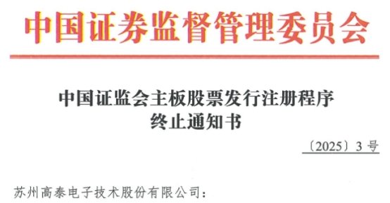中国经济网1月22日讯所网坐昨日披露中国证监会从板股票刊行注册法式终止通知书[2025]3号。